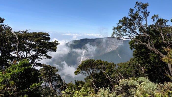 Puncak Pangrango berbeda dengan kebanyakan puncak gunung yang menawarkan panorama lepas. Di sini, pemandangan di balik pepohonan tetap terlihat, tetapi rahasianya bukanlah cakrawala terbuka. Kanopi pohon tinggi masih meneduh sebagian rute, memberi nuansa bahwa kita adalah bagian dari hutan itu sendiri. Sebagai bonus, dari titik ini kamu bisa menyusuri turunan pendek menuju Lembah Mandalawangi di sana edelweiss menunggu seperti lukisan alam hidup.